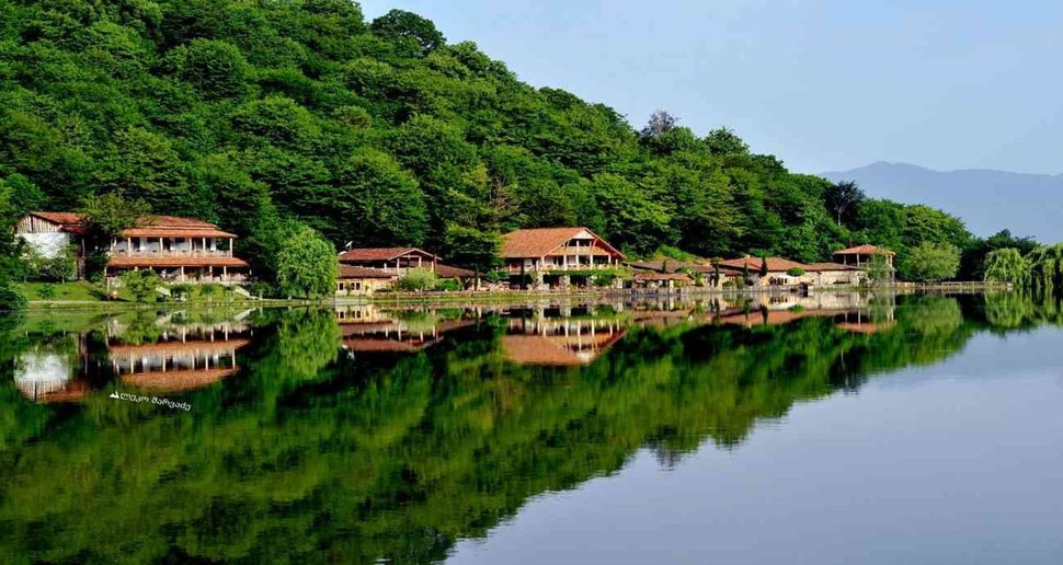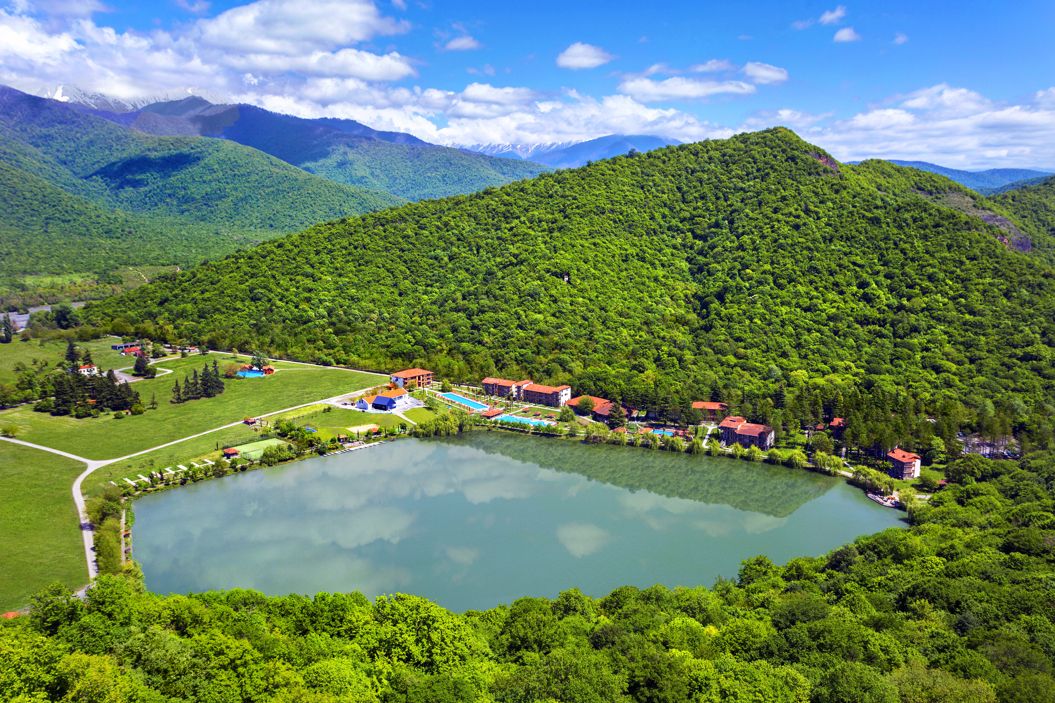 في قلب منطقة كاخيتي، كما يقع حول البحيرة وتحيط به جبال القوقاز الخلابة.
