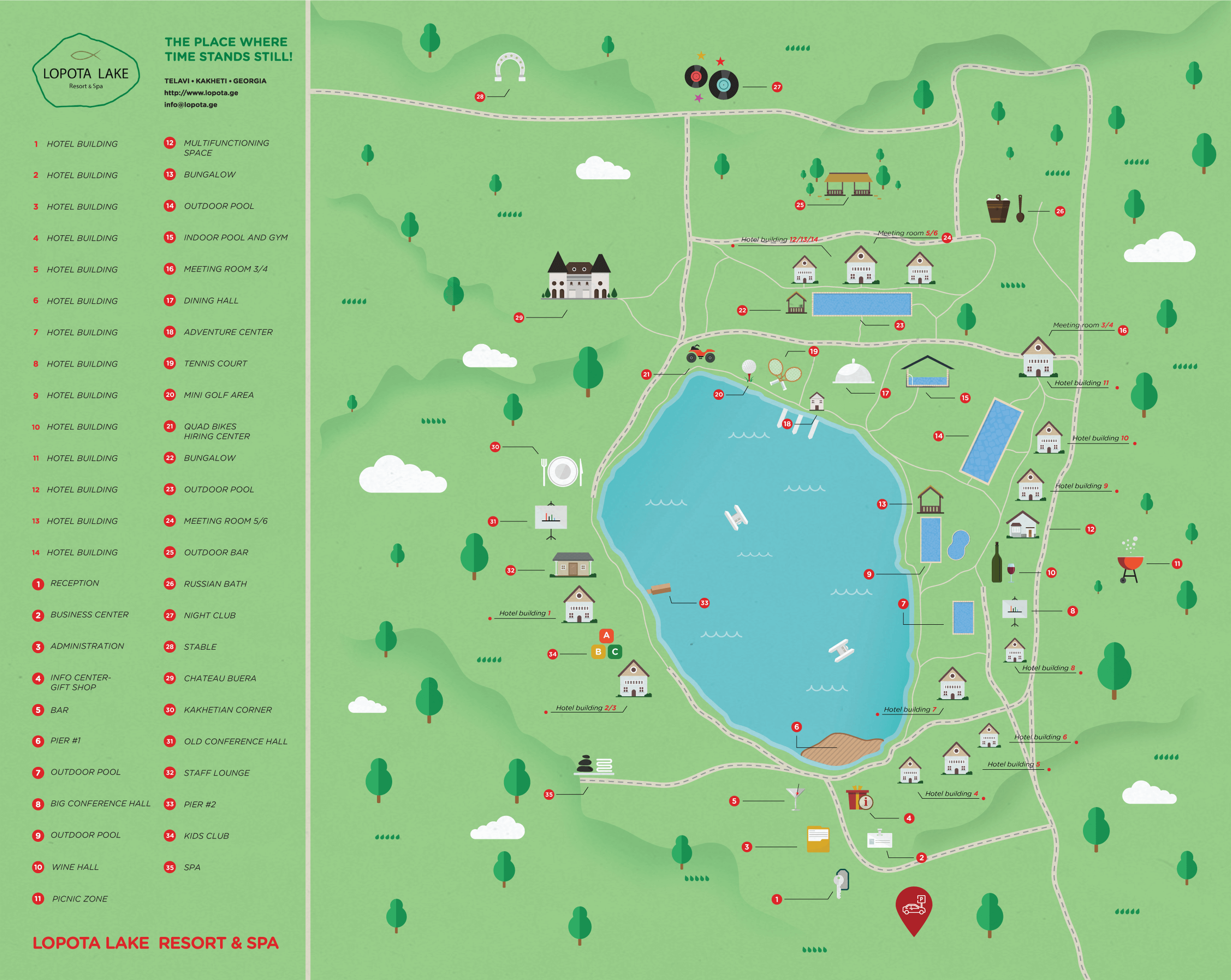 يقيم الضيوف في فندق “لوبوتا” في أكواخ فندقية راقية، حيث يمكنهم الاستمتاع بالمأكولات الجورجية والأوروبية ، كما يمكن للضيوف الاسترخاء في سبا الغابة أو المشاركة في أنشطة الرياضة أو المغامرة أو اكتشاف النباتات والحيوانات المحلية.